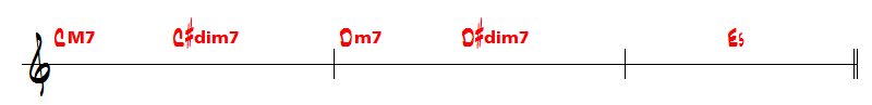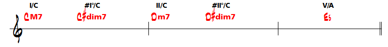 Notez enfin le E+ (Mi augmenté) qui permet le retour sur le couplet en Do majeur.