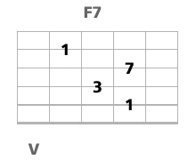 Les diagrammes indiquent les intervalles de l'accord. Il faut étouffer les cordes non frétées. Si vous ne comprenez pas comment les jouer, cliquez ici...