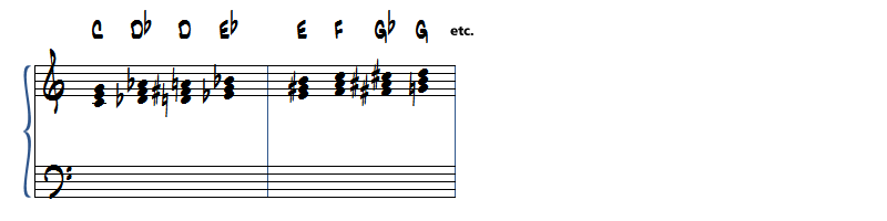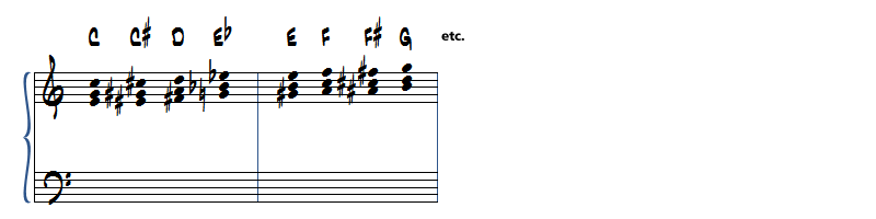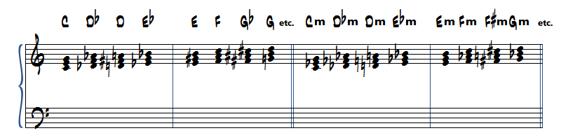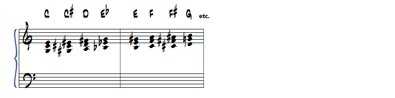 Commençons par des exercices chromatiques pour explorer ces accords de façon exhaustive.