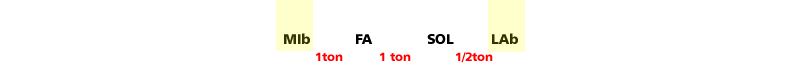 Nous obtenons donc un la, qui sera bémol. Lab est la quarte de mib.