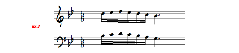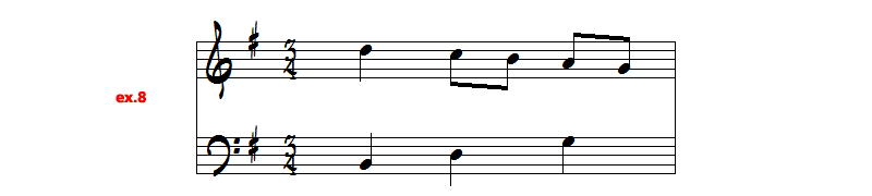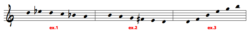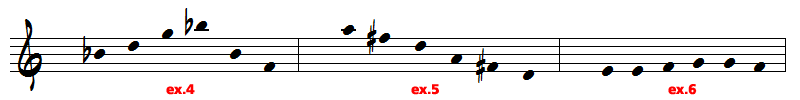 ex.1 : conjoint, ex.2 : conjoint descendant, ex.3 : disjoint ascendant, ex.4 : disjoint, ex.5 : disjoint descendant, ex.6 : conjoint