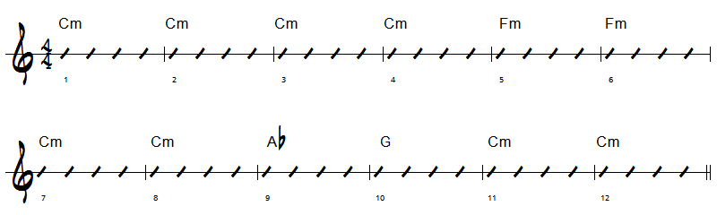 L'autre blues mineur type est ce célèbre standard avec des accords majeurs sur les mesures 9 et 10 :