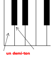 Un demi-ton c'est par exemple ce qui différencie une touche noire d'une touche blanche sur le piano ou 2 notes en montant ou en descendant d'une case sur la guitare :