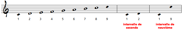 9 | neuvième | 6 tons + 1 ton (octave + seconde) |