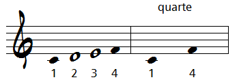 L'intervalle de quarte contient 4 degrés. ces deux notes sont séparées par deux tons et demi.