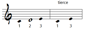 L'intervalle de tierce contient 3 degrés. ces deux notes sont séparées par deux tons.