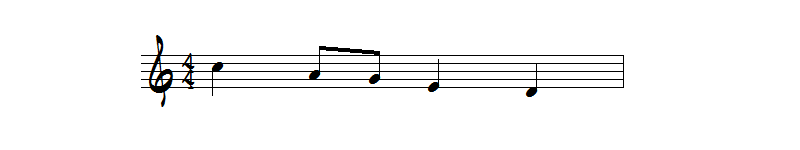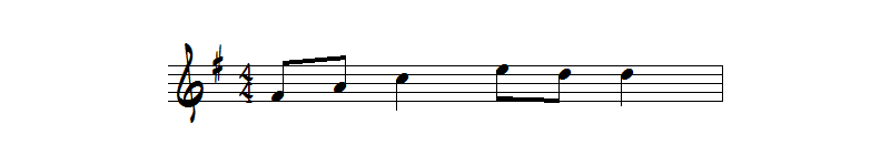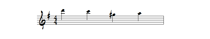 1. Transposez diatoniquement les notes de cette mesure une quarte au-dessus sans changer l'armure à la clé :